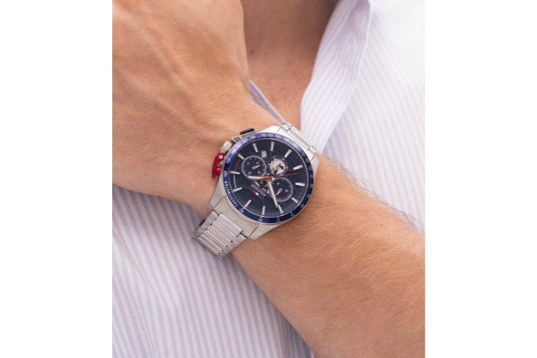 chrono-stalen armband- stalen kast-blauw wijzerplaat- datum-44mm-5atm