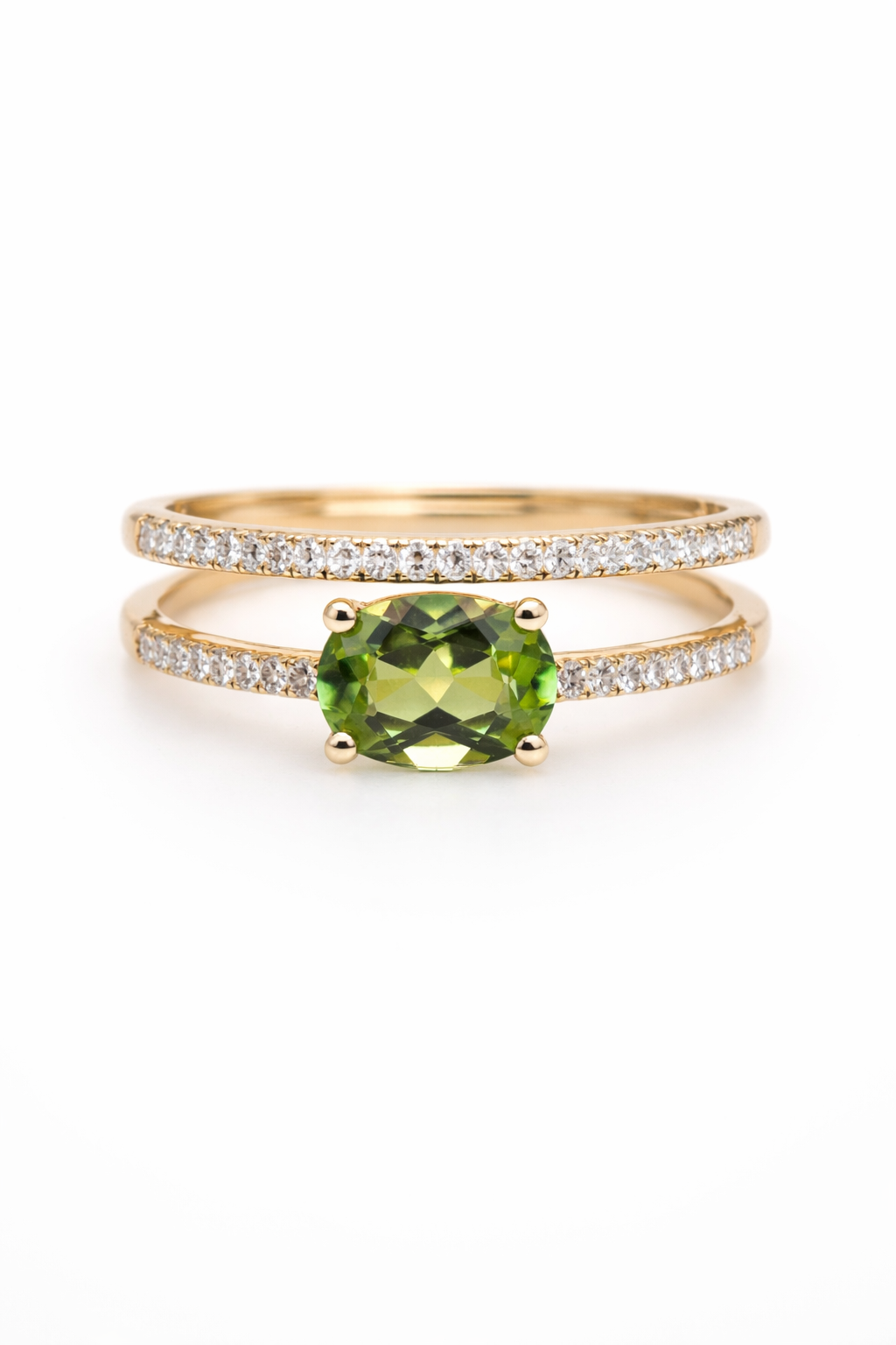 Ring goud 18kt met diamanten en peridoot