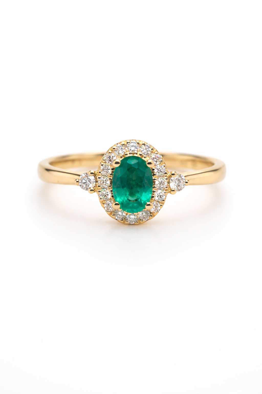 Ring goud 18kt met diamanten en smargad